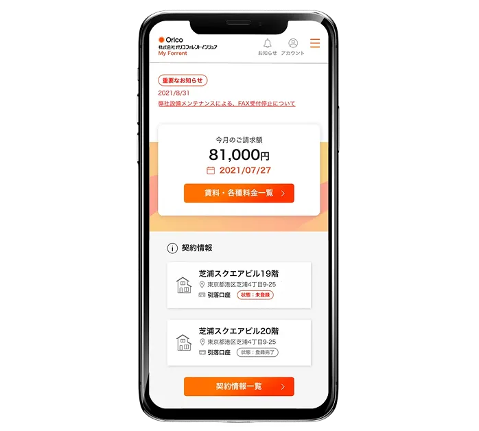 ご契約者さま専用ウェブサイト「My Forrent(マイフォレント)」では、毎月の請求額や支払い状況の確認、明細発行のお手続きが行えます。